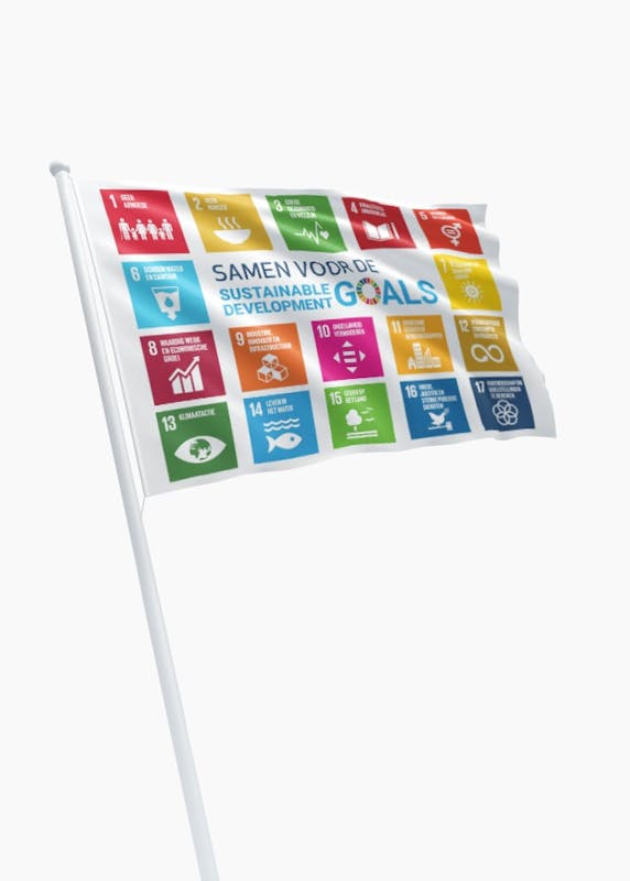 Speciaal voor alle leden van SDG Nederland! Bestel jouw SDG-vlag met ledenkorting via de webshop van DVC. Kies voor de Nederlandse of Engelse variant, gemaakt van 100% gerecyclede petflessen. Hang de vlag uit en vraag extra aandacht voor de Sustainable Development Goals!